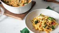 This cozy Noodle, Broccoli and Cheese casserole is hearty enough to keep your family full today. Serve it up hot with crusty bread – YUM!