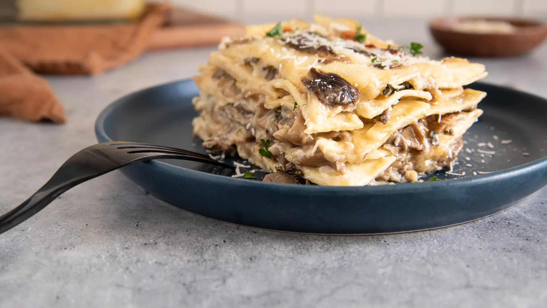 This Mushroom Lasagna is a deliciously, layered pasta dish that showcases the rich, earthy flavors of mushrooms and the comforting creaminess of a homemade onion béchamel. Made with Mrs. Miller’s Extra Wide Noodles, this dish combines a hearty mushroom ragú, crafted from a blend of dried and fresh mushrooms, with the savory depth of prosciutto cotto and the melting richness of fontina cheese. Parmesan cheese adds a nutty, golden finish to every bite.